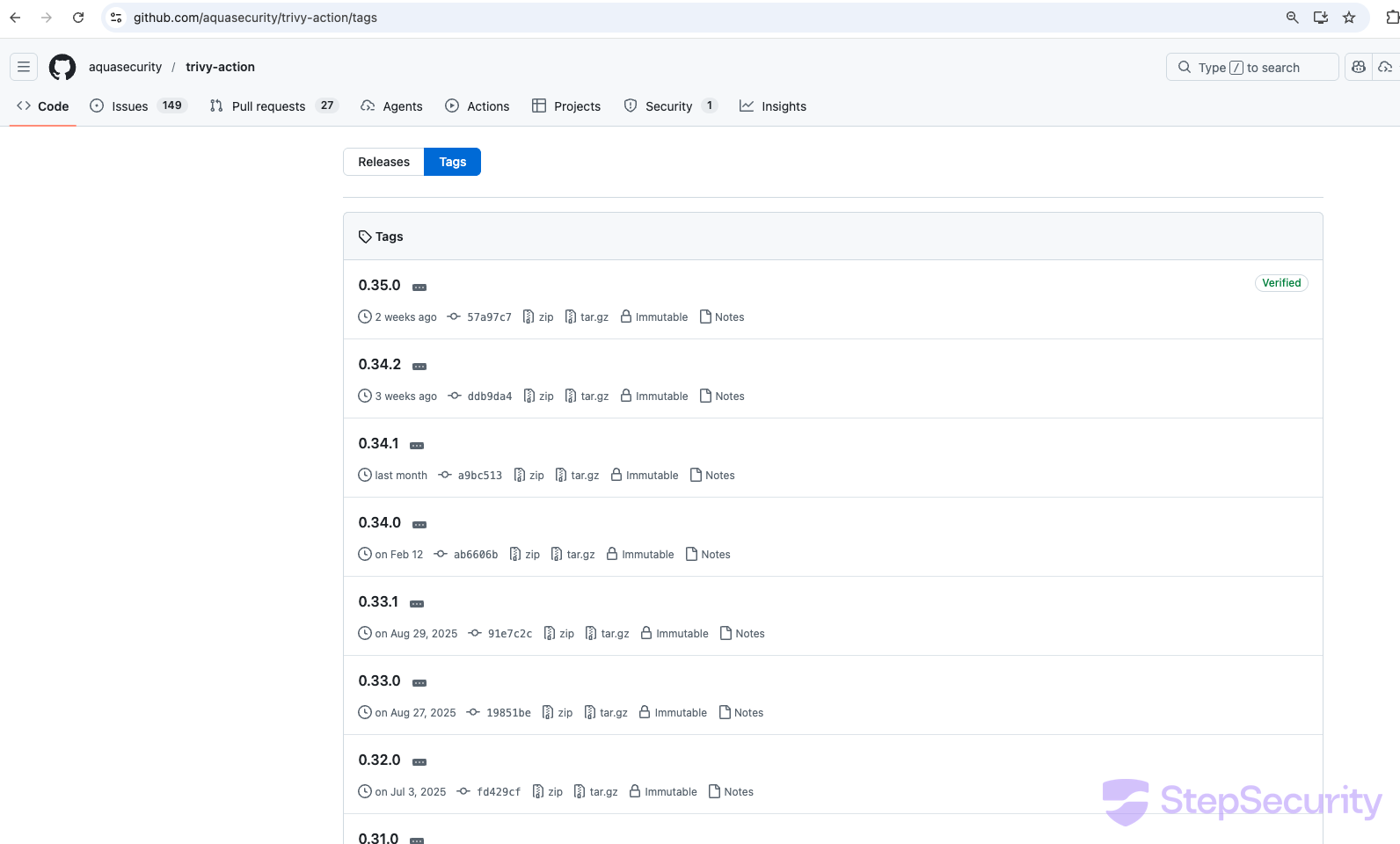 v0.69.4(tag deleted by maintainer) - Deleted setup-trivy tags: all tags except