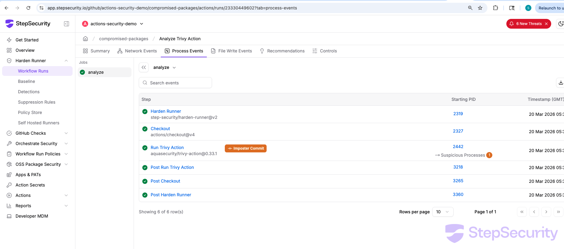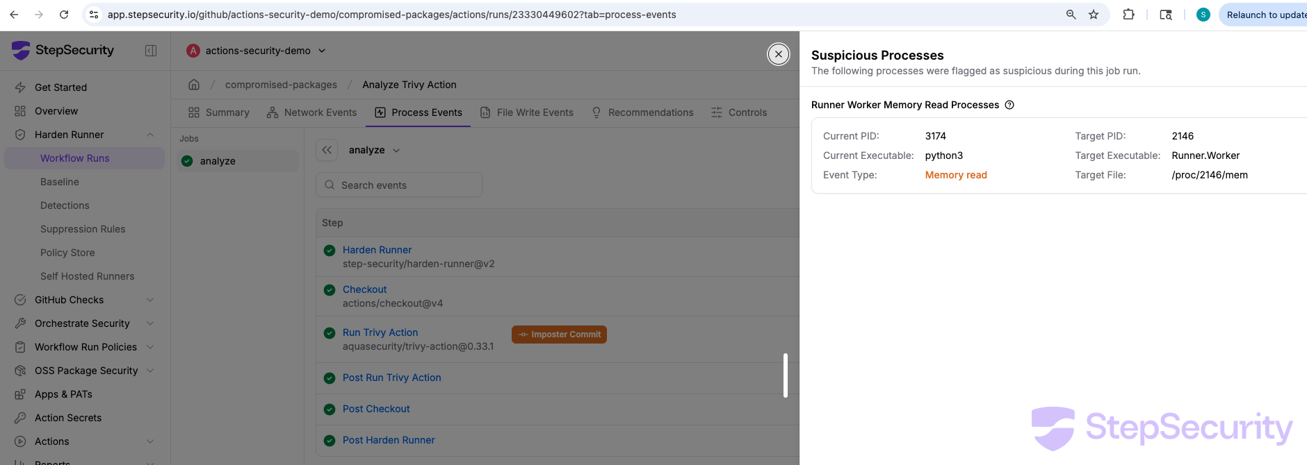 - Process Events: app.stepsecurity.io/github/actions-security-demo/compromised-packages/actions/runs/23326425755?tab=process-events