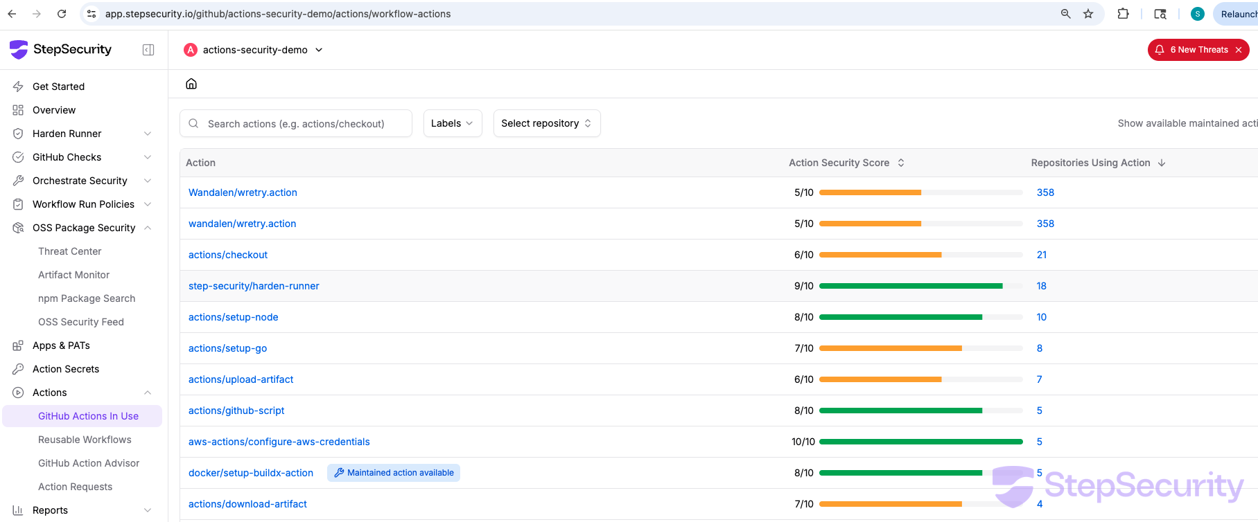 StepSecurity has published a threat intel alert for this incident in the Threat Center. The alert includes all relevant links to check if your organization is affected — including links to check which workflows use the compromised actions, Harden-Runner detections for imposter commits and Runner worker memory reads, and org baseline checks for the C2 domain.