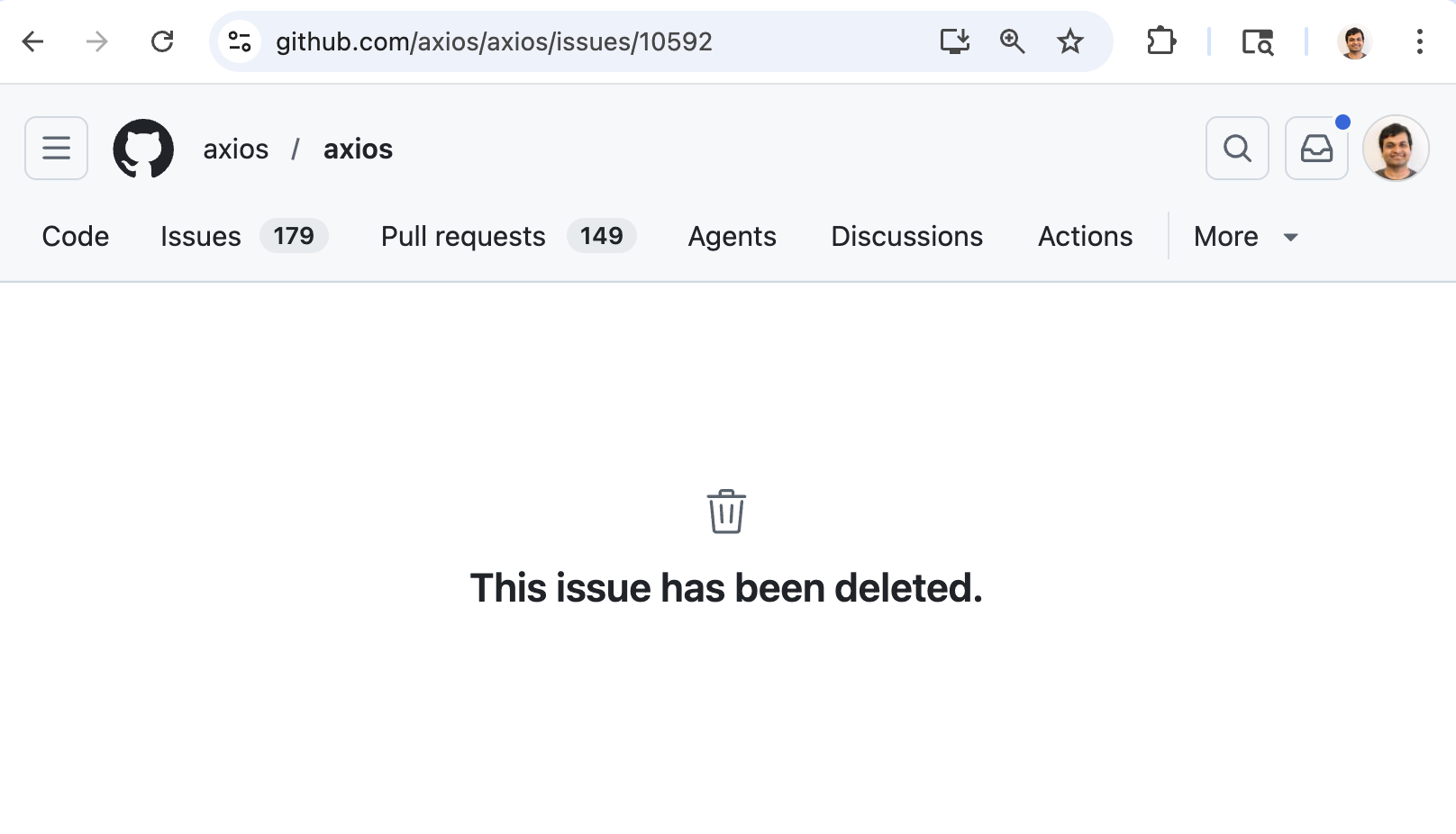 Then something we didn't expect happened. When Ashish went back to the GitHub repository to check on the issue he had created, it was gone. Deleted. No trace of it.