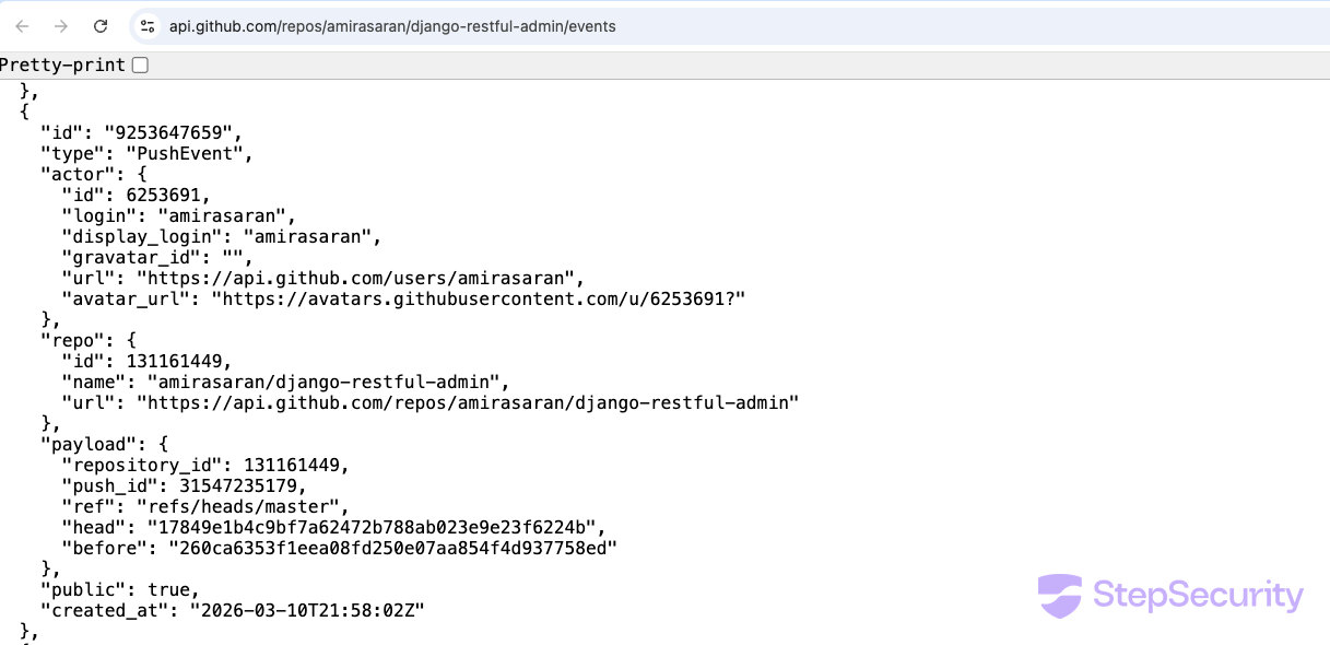 Step 3: Force-Push Evidence from the GitHub Events API