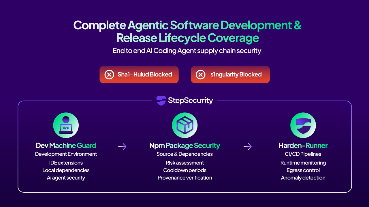 This unified approach means that even if an attack like Sha1-Hulud attempts to compromise your development pipeline, StepSecurity provides defense in depth: