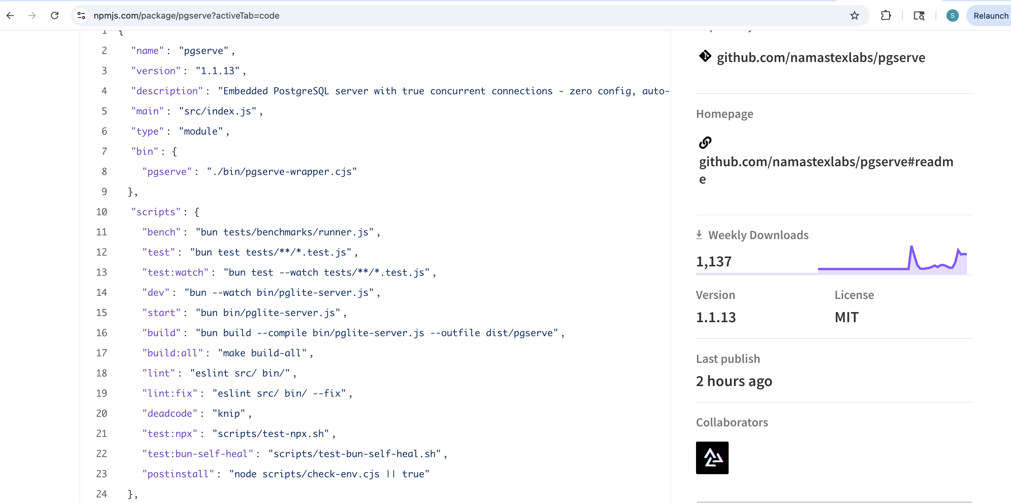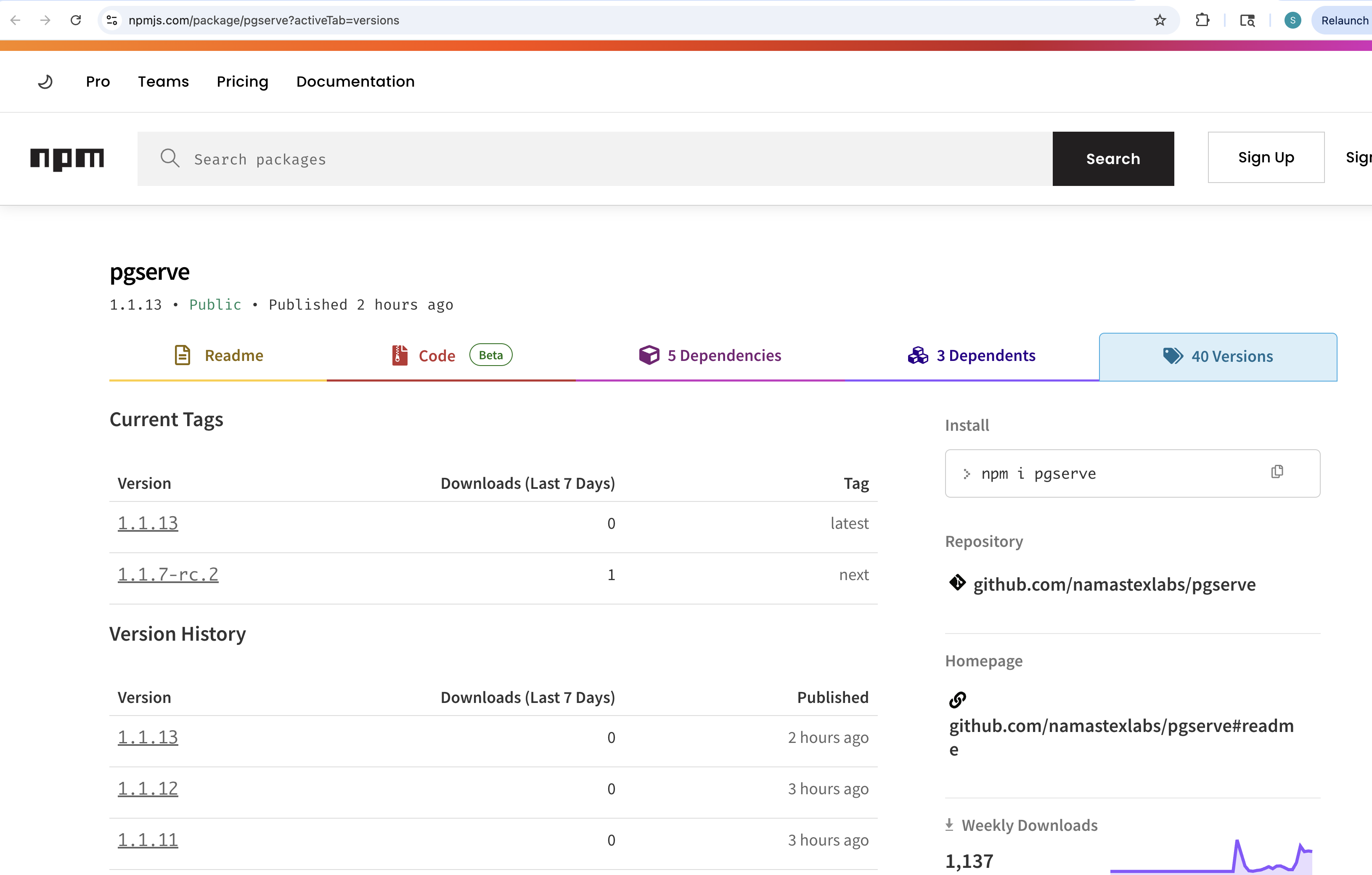 pgserve@1.1.11published to npm, no git tag - April 21, 2026 22:26 UTC —