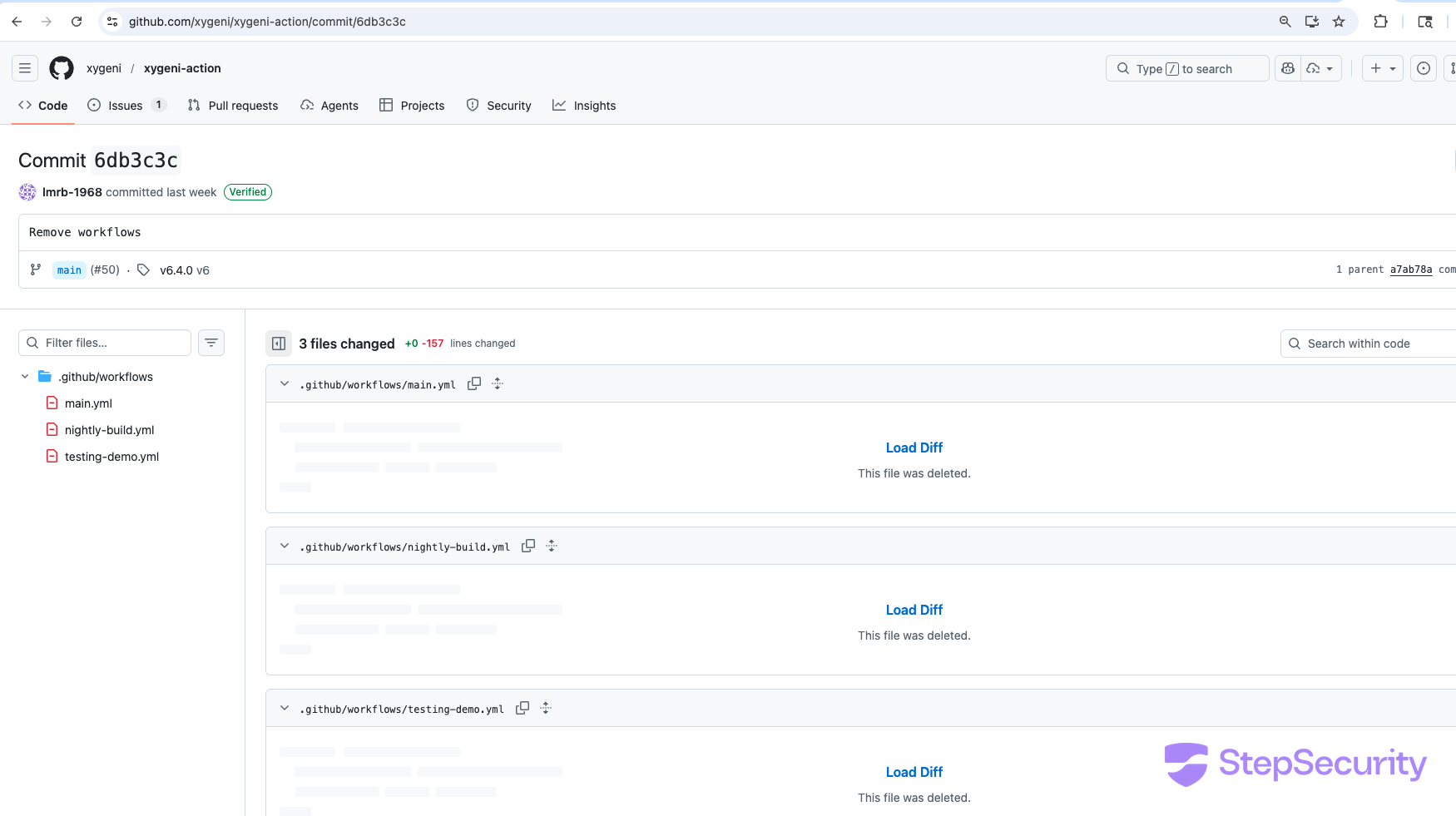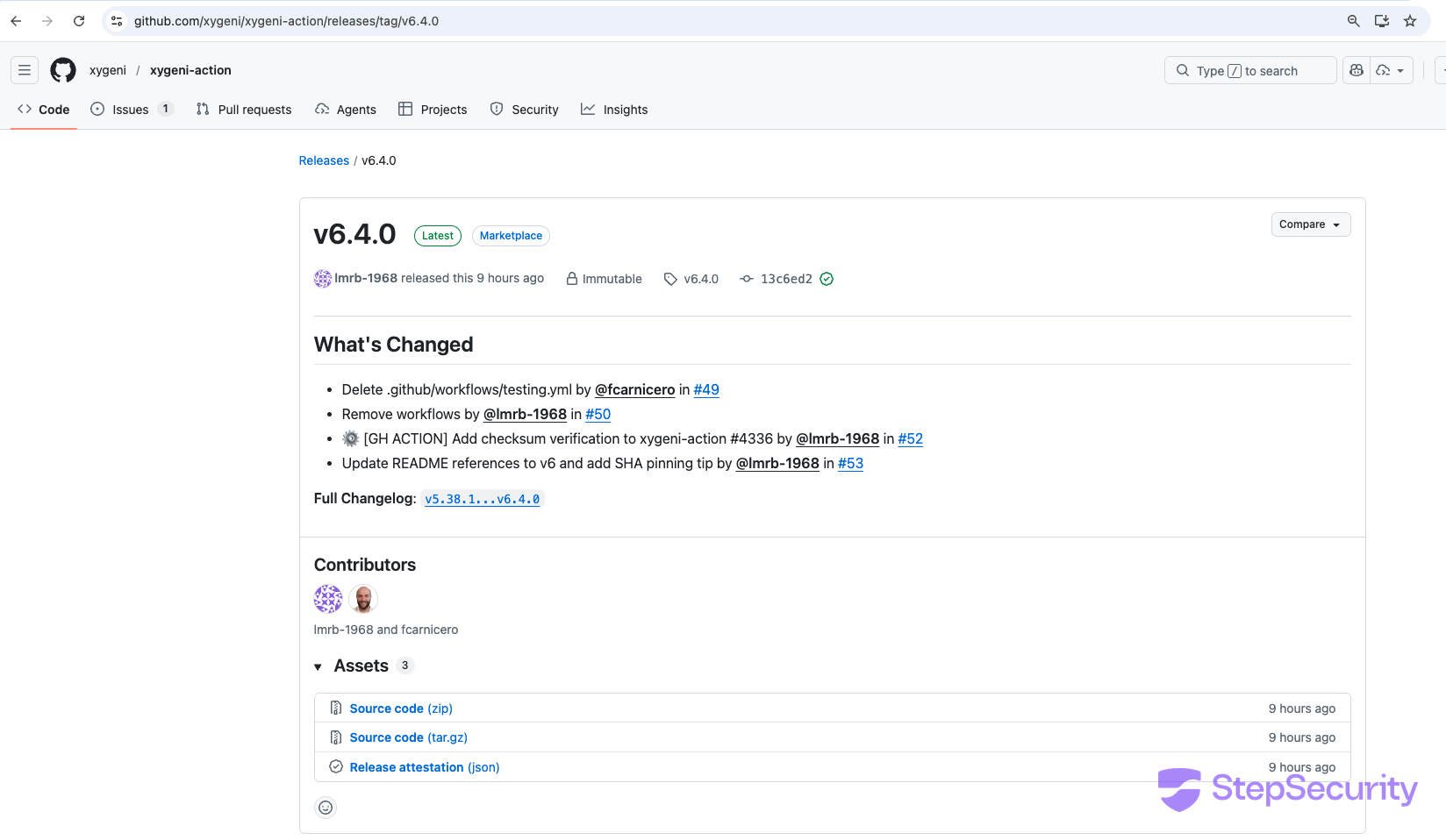 v6.4.0released with SHA pinning guidance in README - 19:57 UTC — Issue #54 opened asking about the malicious code