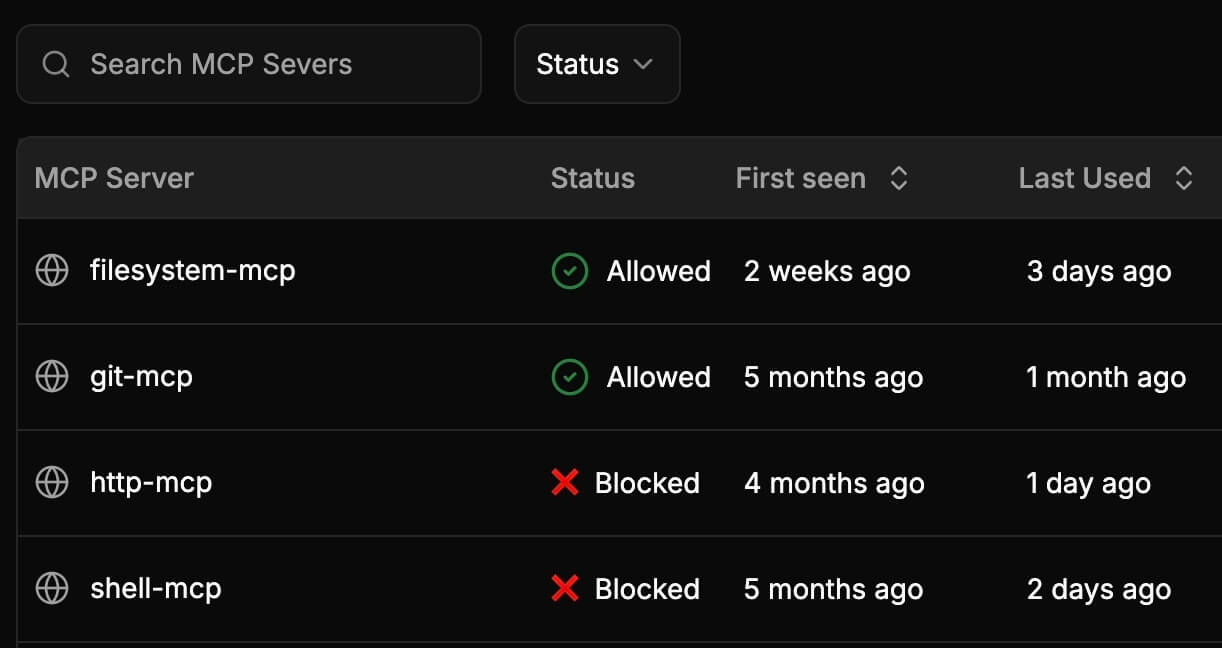 Prevent unapproved MCP servers from being configured for use.